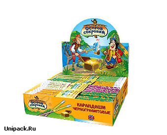Карандаши чернографитовые Остров сокровищ, круглые, незаточенные, c ластиком. Корпус изготовлен из высококачественных пород дерева с ярким красочным рисунком в картонной коробке.