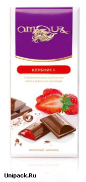Шоколад Конти Amour молочный с клубничным желе в упаковке 100г.