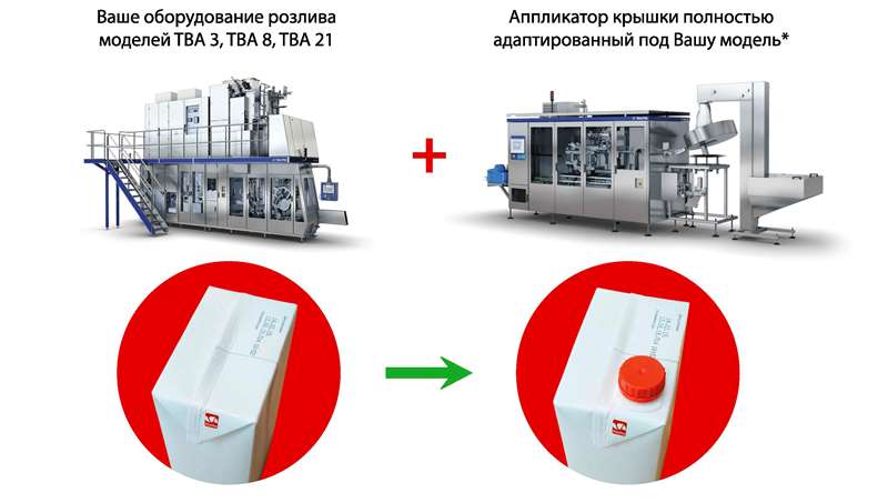 Узнать ценуВаше оборудование розлива моделей Tetra Pak TBA 3, TBA 8, TBA 21 будет оснашего аппликатором крышки полностью адаптированным под вашу модель.* Асептическая упаковка формата Base поставляется под резьбовую крышку, прорубающая слой PLH (мембрана).
