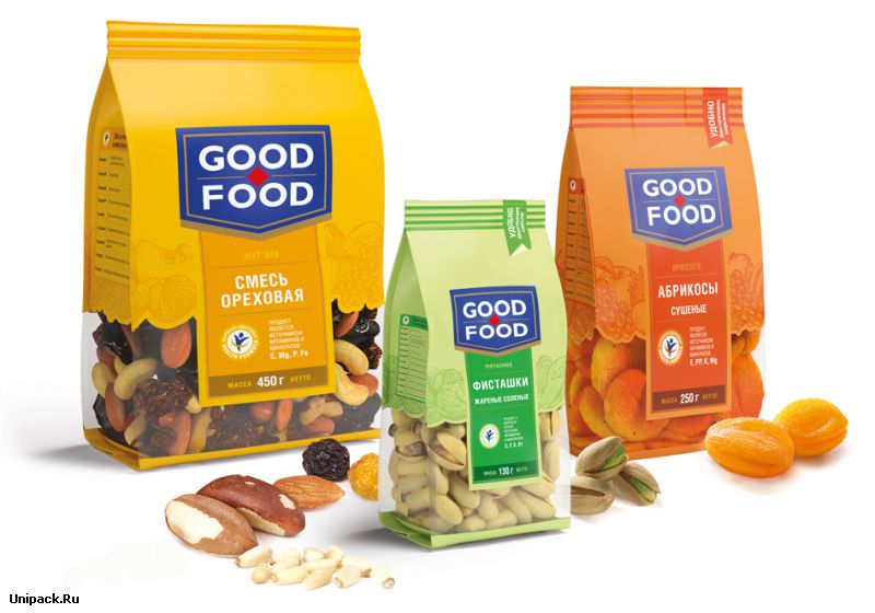 Орехи и сухофрукты ТМ "Гуд-Фуд" в упаковке с многоразовой застежкой.
