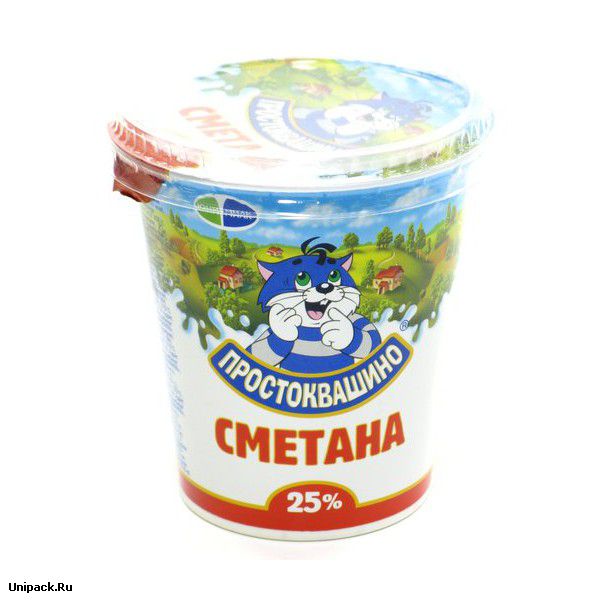 Сметана "Простоквашино" 25% 350 г в пластиковом стаканчике.