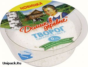 Творог "Домик в деревне" традиционный 0,2% 340г в пищевом контейнере.