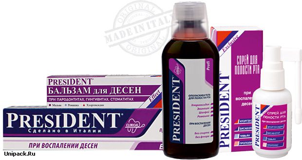 Средства при воспалении десен PresiDENT: зубная паста, ополаскиватель, бальзам