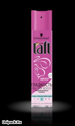 Лак для волос Гладкость Taft - завершение прически с эффектом прямых и сияющих волос.