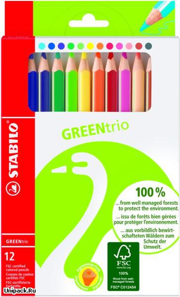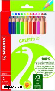 Карандаши цветные Stabilo GREENtrio (12 шт) в картонной коробке.