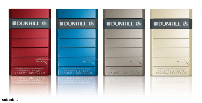 Сигареты Dunhill от British American Tobacco. Dunhill Red с содержанием 10 мг смолы и 0,9 мг никотина; Dunhill Blue с содержанием 7 мг смолы и 0,7 мг никотина; Dunhill Gold с содержанием 4 мг смолы и 0,4 мг никотина; Dunhill White с содержанием 1 мг смолы и 0,1 мг никотина.
