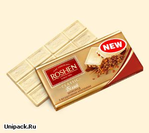 Шоколад "Roshen" белый с бисквитными каплями в упаковке 100г.