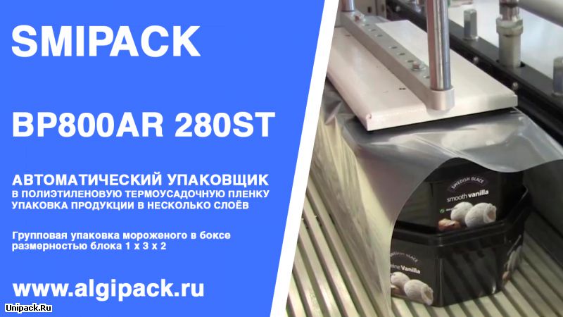 Автомат упаковочный Smipack BP800AR 280ST: групповая упаковка мороженого в боксах в два слоя