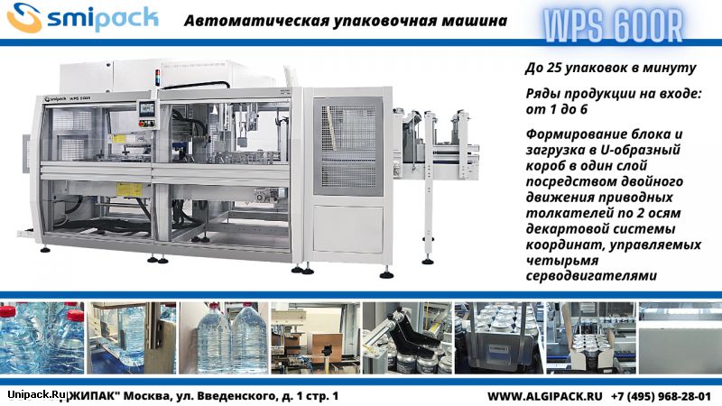 Алджипак автомат SMIPACK WPS 600R групповая упаковка продукции в формируемый картонный короб