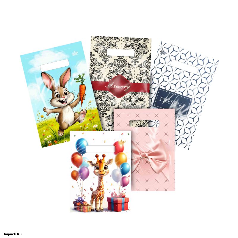 Пакетики маленькие из серии «Миники» предназначены для небольших, лёгких товаров и подарков. Особой популярностью они пользуются у клиентов, занимающихся торговлей сувенирной продукцией, косметикой, канцелярией и т.д.