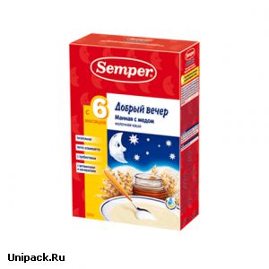 Манная с медом молочная каша Semper "Добрый вечер" в картонной коробке.