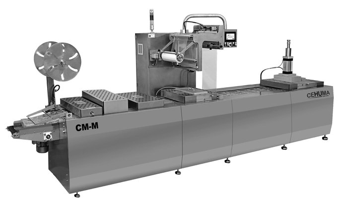 Термоформеры Cehuma Серии СМ упаковывают пищевую и непищевую продукции с помощью мягких и твердых пленок шириной до 600 мм и толщиной до 1200 мкм в модифицированной газовой или вакуумной среде.